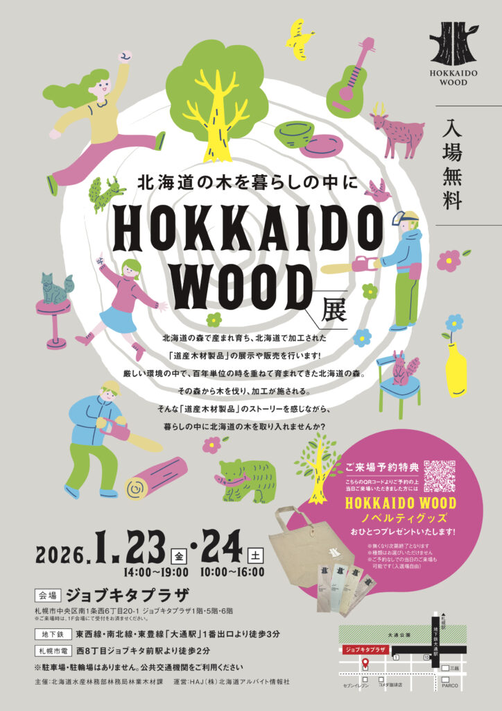 2026年1月23日(金)・24日(土)にジョブキタプラザにて開催されるHOKKAIDO WOOD展に、KURIYAMA FURNITURE(栗山家具有限責任事業組合)も参加いたします。